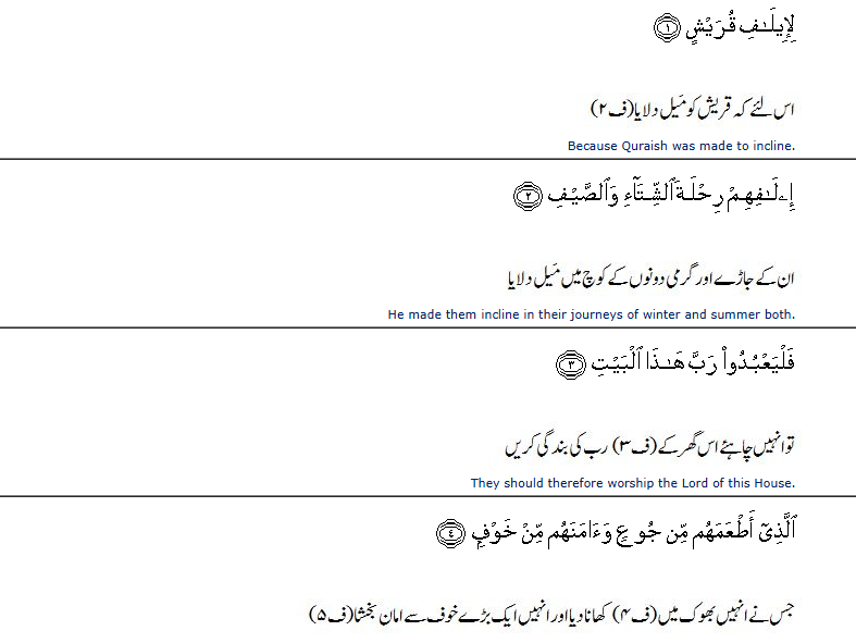 Surah Quraysh translation in Urdu: